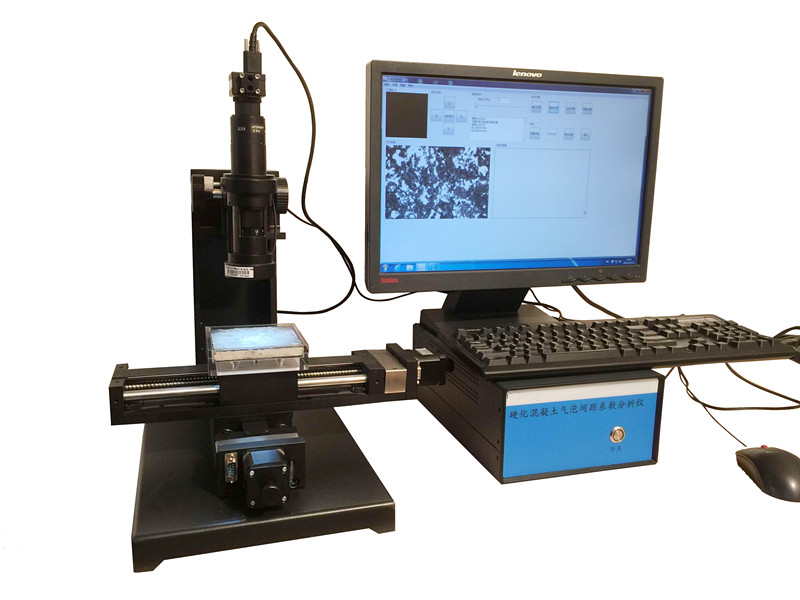 用途:测定硬化混凝土中气泡的数量、大小和间距,用来计算混凝土的含气量、气泡比表面积和间距系数等气泡参数,以研究混凝土的抗冻性能和鉴定外加剂的引气性能等。